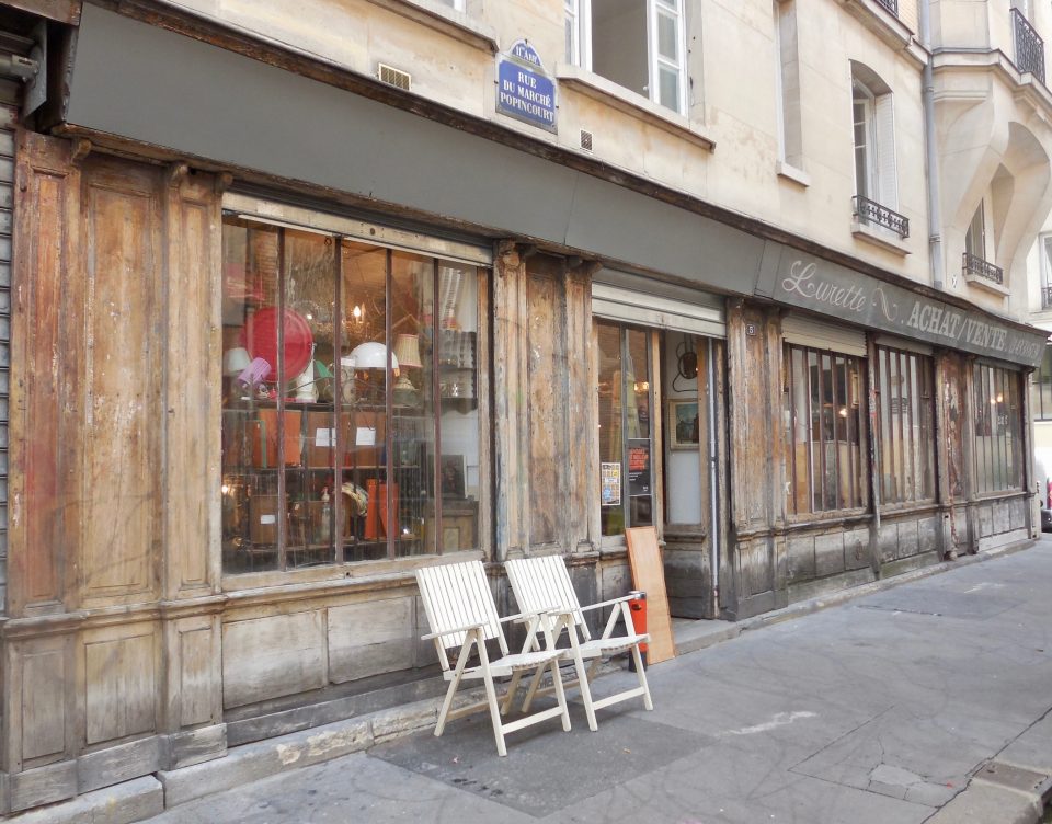 Je ne sais pas ce que cette boutique vendait avant d’abriter cet antiquaire-brocanteur de cette toute petite rue du onzième arrondissement. C’était bien le moins qu’il ne refasse pas la vitrine.