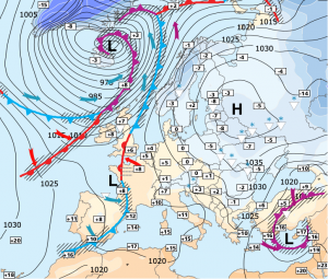 Ceci est la carte de la situation météorologique de l’Europe pour la journée d’avant-hier.
