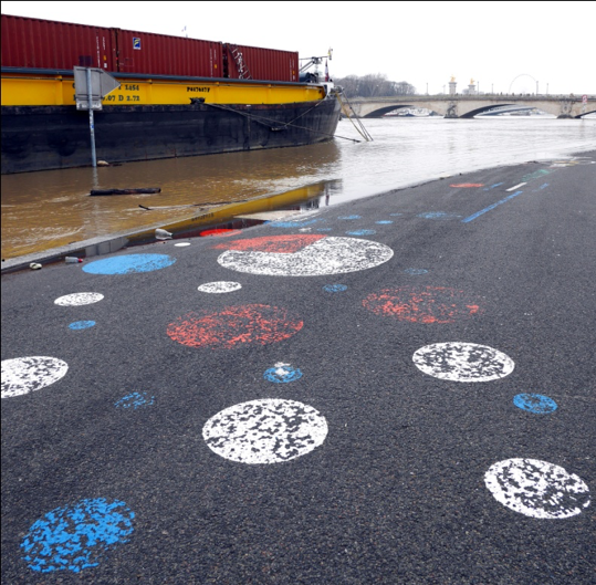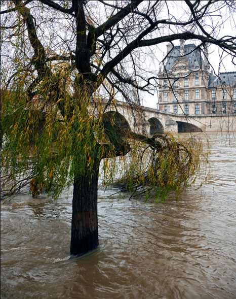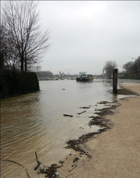 La Seine en crue, les arbres dénudés, et quelques points rouges, sous une lumière blafarde, c’est quand même plus photogénique que la Seine dans son lit et les arbres bien verts sous un ciel bleu uniforme d’été, non ?