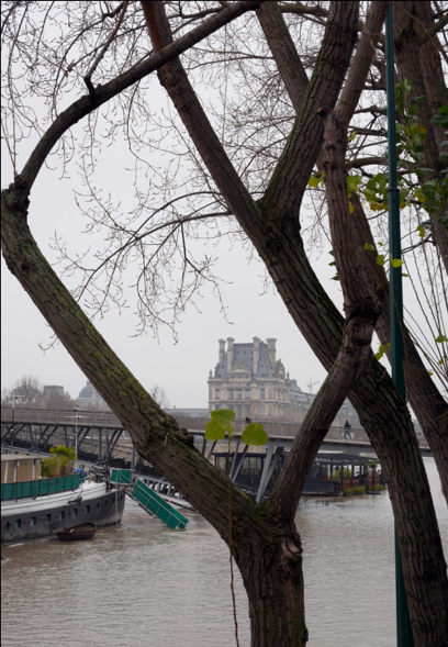 et puis cette vue que je ne connaissais pas du Louvre à travers les arbres du quai Voltaire