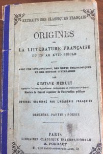 La couverture était remplie d’inscriptions dont je ne pus lire que la plus grosse : « ORIGINES DE LA LITTERATURE FRANÇAISE ». Ça m’allait. J’acceptai le livre, remerciai chaleureusement le bonhomme et le saluai. L’Éthiopien et moi nous séparâmes contents l’un de l’autre.