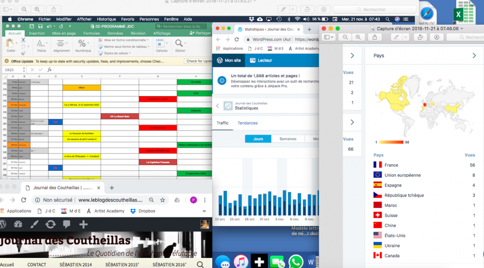 Cinq ans que chaque jour, plusieurs fois par jour, je surveille le nombre des lecteurs et les pays d’où ils me lisent.