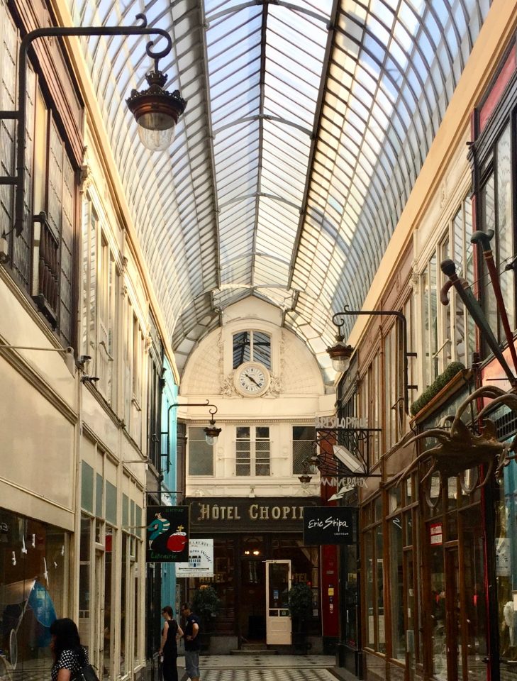 L’Hôtel Chopin date de l’ouverture du Passage Jouffroy en 1846. On dit qu’il est ouvert 7 jours sur 7 et 24 heures sur 24, que sa porte n’est jamais fermée, qu’elle n’a d’ailleurs pas de serrure et qu’il n’y a jamais personne à la réception. On dit ça, mais je n’ai pas vérifié.