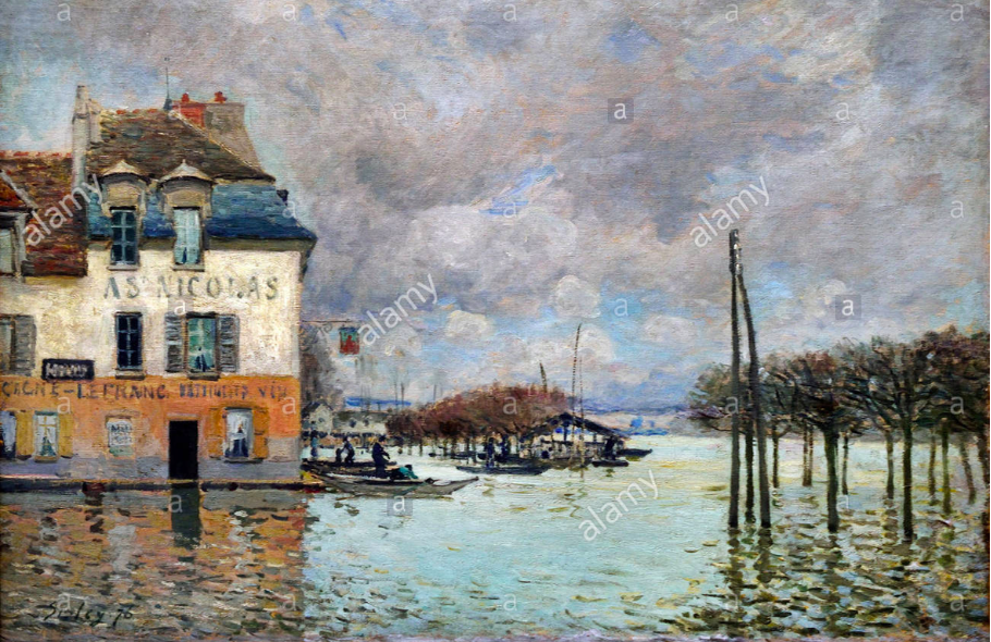 La crue de la Seine à Port Marly d’Alfred Sisley est à l’inverse une peinture qui m’a plu dès la première fois. Je l’ai adorée d’emblée et je l’adore toujours. C’est une harmonie somptueuse de couleurs d’hiver. Je l’ai aimée parce que je la trouvais belle. Avec le temps sont venues des explications discutables mais pas si éloignées de celles que l’on trouve désormais en commentaires intello dans toutes les expositions à la mode. Sur cette œuvre, l’homme est chassé de la nature par sa violence en l’occurrence la crue de la Seine. Seul, il ne peut plus aller retrouver un peu de chaleur humaine au café du coin rendu inaccessible par la montée des eaux. C’est toujours l’émotion esthétique qui prime et s’il m’arrive parfois comme ici d’y trouver une explication, c’est toujours bien après.