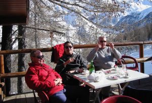 Encore une fois, tout est parfait, chacun est dans son rôle, chacun connait son texte. Une demie heure plus tard, sur une timide suggestion de ma part, tout le monde est d’accord pour repartir. Le plan est parfaitement défini dans ma tête. En bas de la Daille, nous prendrons la navette pour le téléphérique du Fornet, qui nous mènera au col de l’Iseran, puis les deux téléskis vers l’aiguille Pers. On devrait trouver facilement un endroit hors piste pour piqueniquer au col dans le « pays désert ». Ensuite, si on a le temps on improvisera un peu dans le coin en fonction du soleil (je ne peux pas tout savoir par cœur), entre le col et la station intermédiaire du Fornet. Enfin, et j’y tiens, on prendra cet incroyable télésiège des Leissières qui donne des sensations de Foire du Trône pour nous retrouver sur la Solaise. De là, en fonction du monde sur les pistes, nous pourrons prendre un café les skis aux pieds avant de foncer vers Bellevarde, l’essentiel étant de se retrouver en haut de Tovière peu après 4 heures. Bien sûr, il n’est pas question de prendre mes partenaires à rebrousse-poil en leur révélant mon plan d’un seul coup. Il faut agir progressivement et avec diplomatie. J’aurai tout le temps de le leur lâcher par bribes dans le téléphérique ou pendant le piquenique.