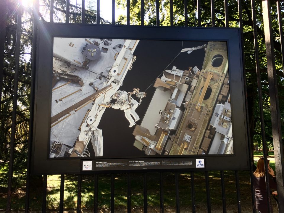 Comme d’habitude. Sans rien dire. Ils ont remis les photos sur les grilles, sur mes grilles. Et pour quatre mois ! Cette fois-ci, c’est un assemblage hétéroclite et anarchique d’images de la lune et d’autres planètes, parfois séparées par des photos de trois ou quatre Playmobils habillés de blanc, penchés sur des trucs enveloppés dans du papier d’argent ou jouant du saxo la tête en bas dans une minuscule chambre d’enfant dans laquelle aucun adulte ne serait entré depuis deux mois.