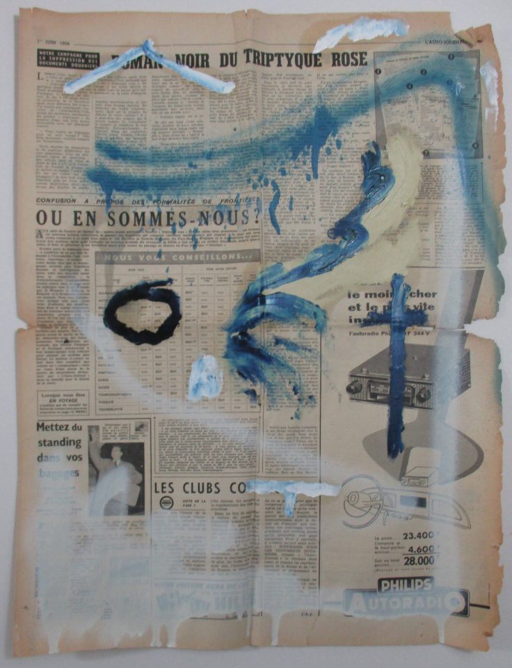 En plus de sa valeur artistique, ce tableau sur papier « L’auto-journal » daté du 1er juin 1956 nous reporte aux grandes interrogations fondamentales d’il y a 64 ans: « où en sommes-nous? » – on ne sait toujours pas! « Mettez du standing dans vos bagages! » – lesquels? « Les clubs contestent! » – quoi donc? J’ai retrouvé la Une de l’auto-journal du 1er juin 1956 et ses grands titres: la Dauphine au banc d’essai. Demain il sera trop tard. Pas de ça chez nous (avec une photo du parvis de Notre-Dame)! Rien ne change, quoi! À part ça, Guy Mollet était Président du Conseil et s’apprêtait à poser une question de confiance et Jean Robic, le célèbre coureur cycliste, était victime d’un sérieux accident. Toute une époque, j’avais, heuuu, 14 ans je crois, et la vie devant moi. Et Jean Gabin chantait….
