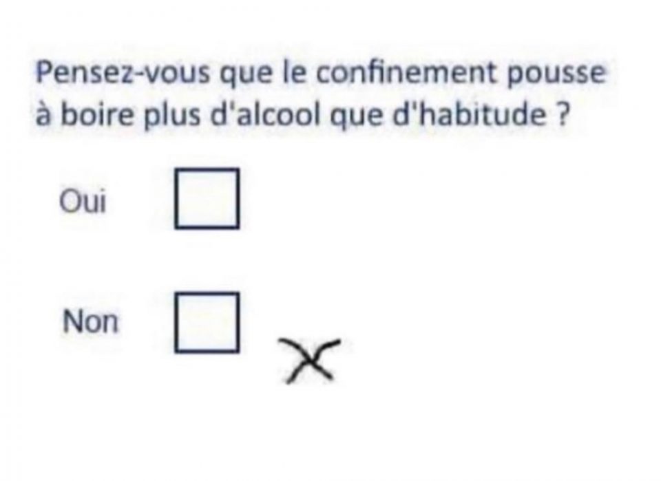 Contrairement à Bruno il s’agit de l’eau ou du café, bien sur. J’ai dû prendre un once de cognac et peut être une bière depuis le début du confinement. Les files à la SAQ était bien trop dissuasives.