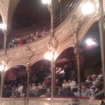 C’est pas mal, un théâtre à l’italienne ! La salle est belle, le plafond est splendide. Par contre, nos places sont épouvantables, au fond d’une loge du premier balcon. D’ici, on ne verra jamais rien, il y a une colonne en plein milieu ! En plus, j’ai déjà du mal à entendre, mais alors là, ça va être très dur. Ça ne fait rien, dans les loges, il y a des chaises, et une chaise, on peut se renverser dessus et dormir. Et puis, d’une loge, on peut toujours sortir discrètement. J’irai au bar.