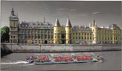 Un exemple : voici une carte postale représentant un bateau-mouche passant sur la Seine devant la Conciergerie. Je lui ai donné la légende qui figure sous la photo.