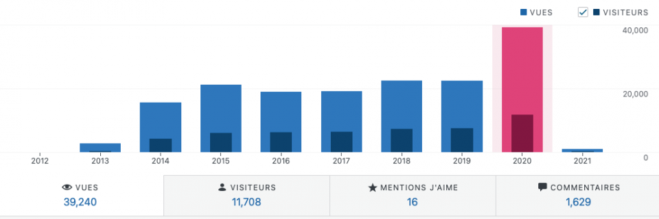 Juste en dessous, c’est le graphique de progression du lectorat depuis la création. Il parle de lui même :