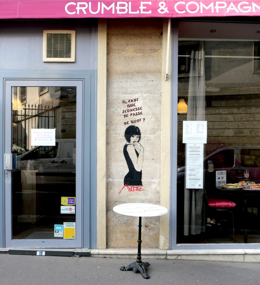 Celui-là, je ne le connais pas et il ne me rappelle rien du tout mais les œuvres de Misstic fleurissent par bonheur les rues de Paris enlaidies par la Maire Hidalgo. Je ne sais pas quand elle a fait ce pochoir mais il est d’une actualité effrayante. Quant au nom du café, il me rappelle ce dessert que nous faisait jadis une amie qui ne savait faire que celui-là. Elle avait réussi à nous en dégoûter à jamais.