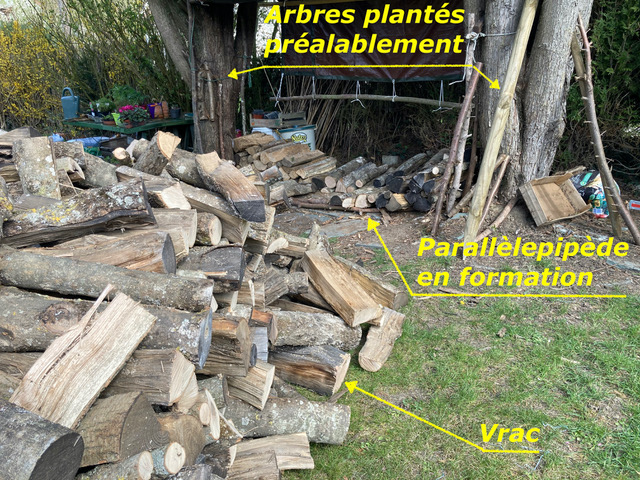 Or doncques, si vous avez des buches en vrac et que vous vouliez les ranger (en matière de buches, on ne devrait pas dire ranger, mais tasser ; le problème, c’est que « tasser » évoque « mettre en tas », c’est même la finalité de ce verbe et, à ce stade, pour la clarté de l’exposé, j’ai décidé de ne plus parler de tas), voici comment procéder :
