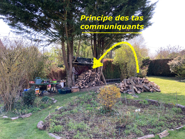 Cette pratique est à la fois paradoxale car, on le sait, les tas ne peuvent exister, et utile, car des buches en vrac, c’est pas pratique, ça empêche de passer la tondeuse , et ça fait jaser les voisins.