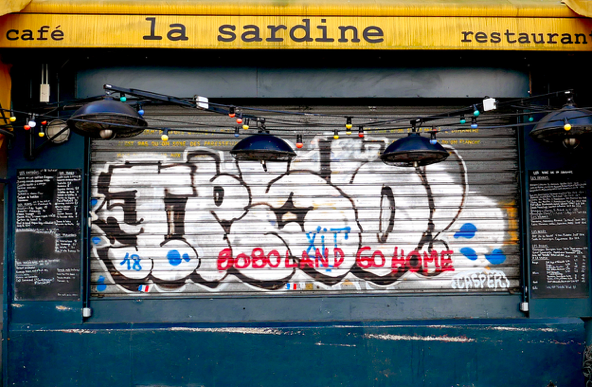 J’ai traversé tout Paris pour aller pêcher cette sardine à Belleville. Malheureusement, elle était couverte de tags. Je trouve ce graphisme d’une laideur absolue. Triste constat : il y en a sur les rideaux de tous les magasins fermés, Covid oblige, ce qui fait un paquet. Ils ont donné aux rues de Paris un visage laid, sale et hostile. J’ai cherché quels étaient les moyens de lutter contre ce fléau et j’ai été rassuré car il existe un service dédié à la Mairie de Paris :