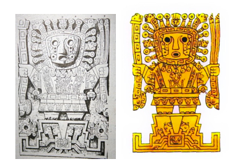 Cette affaire du Temple du Soleil, détruit par un tremblement de terre, puis ses ruines livrées à un pillage infâme, maintenant l’objet d’un projet de reconstruction sous l’égide d’une association aux intentions plus ou moins louches qui se domicilie au Château de Moulinsart, cette affaire, donc, mérite que nous nous intéressions à ses dessous et à leur propreté. Tout d’abord, existe-t-il un lien entre Moulinsart d’une part, ses acolytes Tintin, Hadock, Tournesol, le JDC d’autre part, et ce temple du soleil d’origine inca ? A l’évidence il y en a un, nous verrons plus loin lequel. Mais avant cela, que pouvait bien faire un temple inca à proximité de Champ-de-Faye, un paisible hameau de l’Aisne ? Cette improbabilité iconoclaste a été levée par le célèbre écrivain investigateur Laurent Binet (HHhH ; La septième fonction du langage) dans son dernier livre Civilisations. Binet nous apporte une explication uchronique mais irréfutable : l’inca Atahualpa, en guerre avec son frère, trop à l’étroit sur un territoire trop petit pour y avoir deux chefs, fatigué de porter sa misère hautaine, il décida avec quelques fidèles, ivres d’un rêve héroïque et brutal, de partir comme un vol de gerfauts hors du charnier natal sur l’océan vers l’est à la conquête d’un nouveau royaume. C’est ainsi qu’ils débarquèrent à Lisbonne en 1531, ville qui venait de subir un tremblement de terre dévastateur. Atahualpa ne se découragea pas et servi par son intelligence politique et militaire il conquit rapidement une vaste partie de l’Europe jusqu’aux terres de l’Aisne aux confins de la civilisation, où, satisfait de ses conquêtes, de son pouvoir et de cette région accueillante, il fit construire un Temple du Soleil à l’image de sa gloire. Le motif central de la porte du Soleil représentait le dieu Viracocha, volé depuis longtemps par un dénommé A. Malrot mais dont il existe une photographie en noir et blanc reproduite ci-dessous. Or, il se trouve que les éditions de Moulinsart qui publient les aventures de Tintin et consorts ont repris ce motif qu’on trouve en première et dernière pages de l’album justement intitulé Le Temple du Soleil reproduit ci-dessous en couleur.