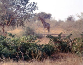 Une de nos premières sorties en janvier, a été d’aller observer les girafes en totale liberté. Je les avais repérées aux environs de Boubon. Les girafes avaient migré de la zone sahélienne vers le sud à cause de la sécheresse persistante. C’est ce qui expliquait leur présence aux environs de Boubon. Après avoir laissé nos voitures en bordure de la piste, nous nous sommes enfoncés à pied dans la brousse. Après environ une demi-heure de marche nous avons trouvé notre première girafe. Et peu à peu nous nous sommes rapprochés. Nous admirions la grâce de ces animaux sauvages,