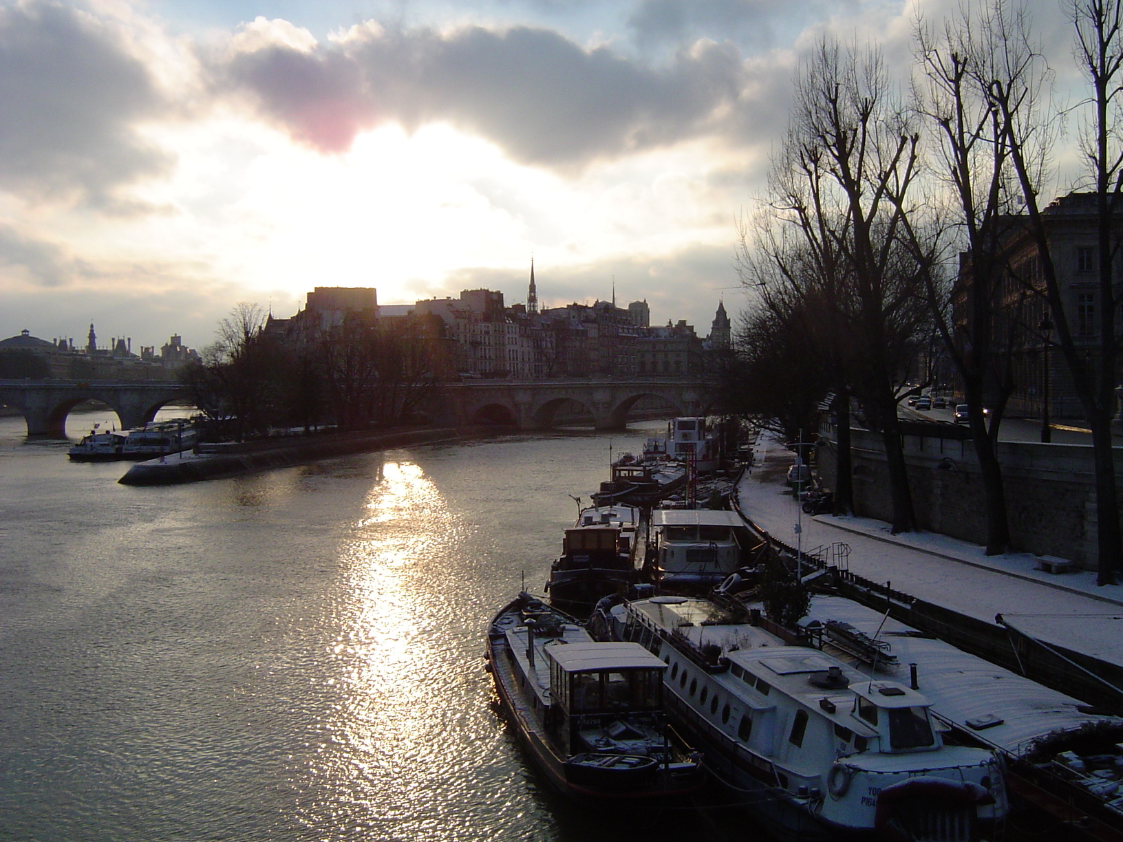 La photo est prise de la Passerelle des Arts vers le square du Vert Galant qui est situé à la pointe Ouest de l’Ile de la Cité. Le Vert Galant fait référence au surnom d’Henri IV (1553-1610).
