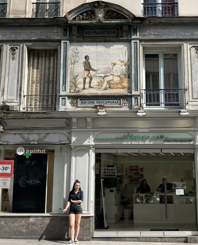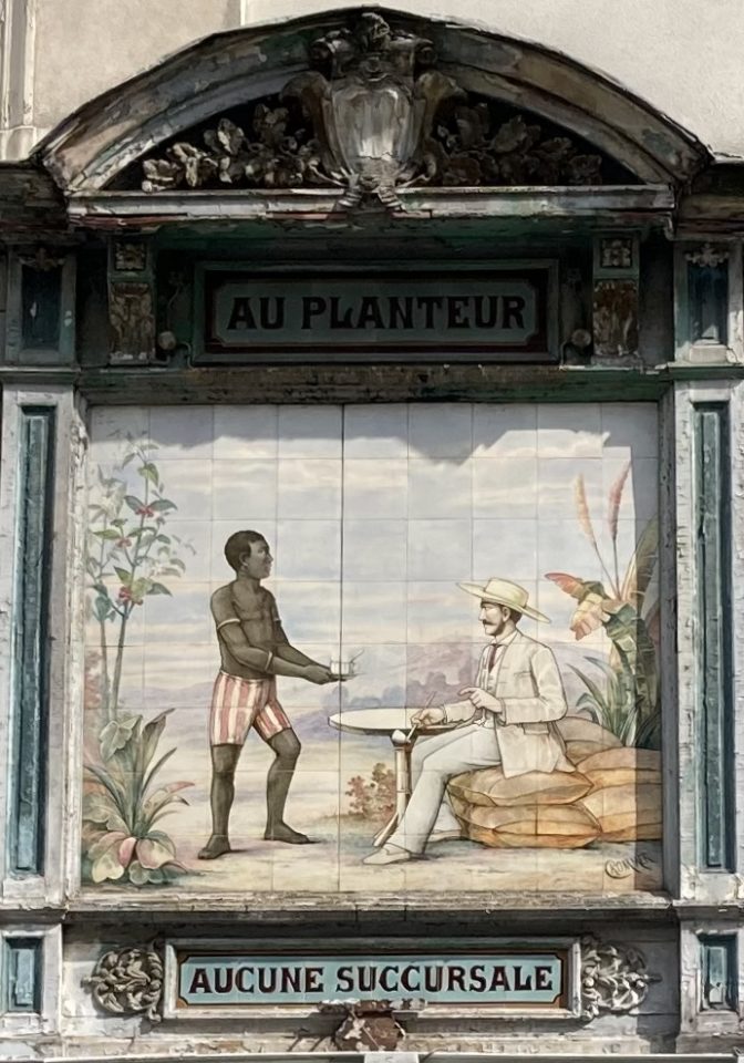 Bien plus choquante que celle de la rue Mouffetard, dans laquelle l’homme noir était habillé comme un bourgeois et servi par une domestique blanche, celle-ci ne laisse aucune ambiguïté sur la nature des rapports entre les deux hommes : le noir en petite culotte est au service du blanc en bel habit de lin. Et, détail ignoble, un bandeau sous le dessin obscène précise « AUCUNE SUCCURSALE » ! Encore heureux ! Et cela fait 125 ans que c’est comme ça. Heureusement, cela ne saurait durer encore bien longtemps. Déjà, de courageux justiciers saccagent régulièrement l’enseigne par des jets d’encre vengeurs. De plus, quatorze micro-trottoirs sélectionnés par l’Obs ont montré que la population locale était choquée en permanence de ce rappel colonial (on pourrait même dire colonialiste) et on annonce prochainement une pétition lancée par un groupe parlementaire. « Planteur, t’es foutu ! La NUPES est dans la rue ! » Les heures de cette enseigne inscrite aux monuments historiques depuis 36 ans sont donc comptées.