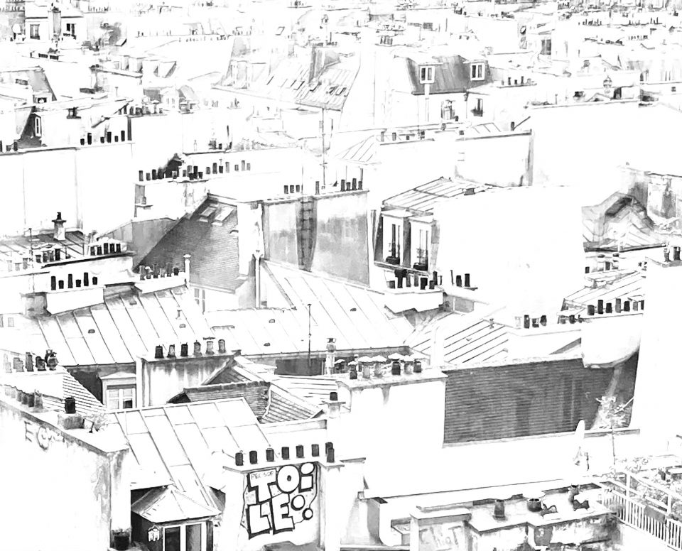C’est une photographie prise du haut de Montmartre et travaillée pour la faire ressembler à un dessin.