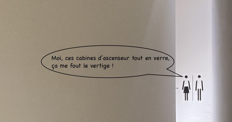 Donc, si je comprends bien, ce couple bon chic bon genre qui a suivi la flèche pour se rendre aux toilettes, elle pour les femmes, lui pour les hommes, se retrouve dans l’ascenseur, lequel n’est donc pas genré biologiquement. Ah! cela mérite réflexion.