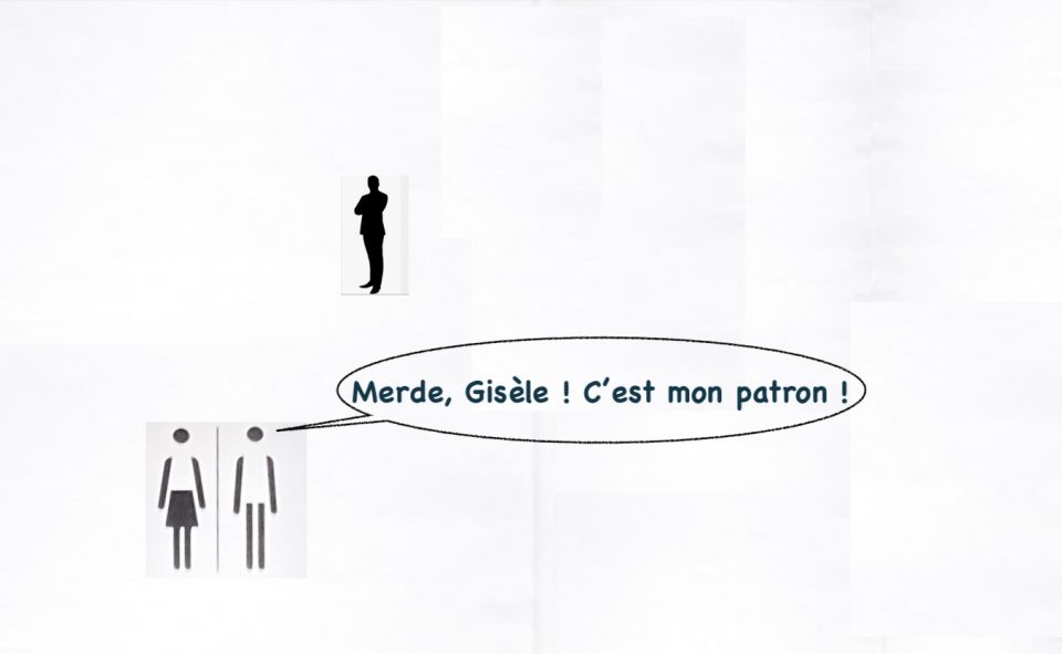 Décidément, j’apprécie de plus en plus cette série de cartoons mettant en scène J-P et Giselle et qui inspire mon imagination. Ce matin, je vois plusieurs répliques possibles pour Gisèle, par exemple l’une paniquée (elle connaît ce patron, peut-être intimement ou plus), ou curieuse (enfin connaître celui dont Jean-Pierre lui casse les oreilles), une autre pour proposer le mensonge qui sauvera J-P, etc. Mais laissons le cartoon agir tel quel.