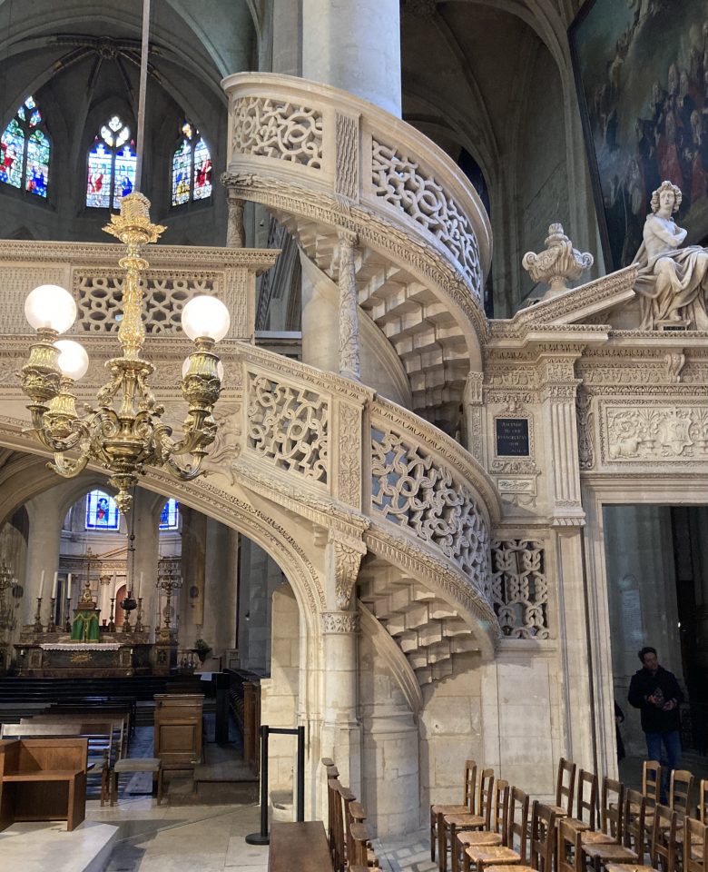 Je reconnais que Lavraigeoise a doublement raison de louer Notre Seigneur le Rédacteur en Chef (NSRC). L’escalier de la chaire de Saint Étienne du Mont est une splendeur et la photo de notre Maître l’est encore plus par la rigueur de sa composition autour d’un axe de symétrie vertical d’une simplicité austère mais ô combien efficace !