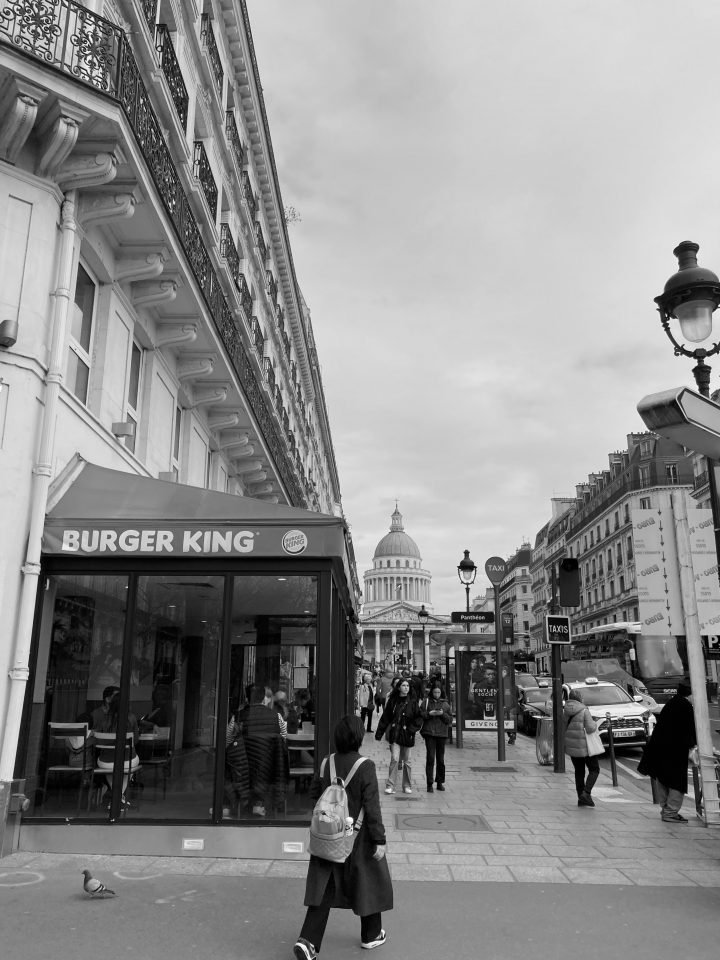 Le haut de la Rue Soufflot a gardé plus ou moins le respect de soi-même, mais le bas ! Regardez un peu ce qu’il est devenu ! Non mais, franchement ?