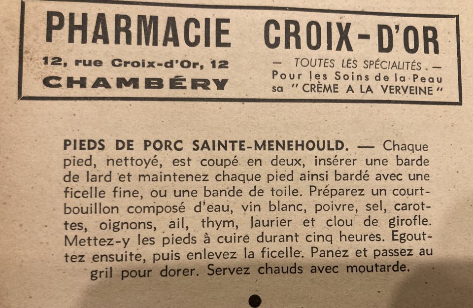 Et rien de tel pour retenir votre mari que de lui servir des petits plats délicats comme celui que nous recommandons particulièrement car il a donné satisfaction à plus d’une. N’oubliez pas que pas un homme n’a jamais résisté aux pieds de porc à la Sainte-Menehould…
