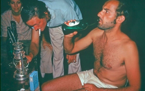 Nous avions établi un protocole à l’arrivée, le soir, au campement : Il nous fallait vider entièrement les véhicules dépourvus de siège arrière, contenant chacun: 2 roues de secours, 1 bidon d’eau, 1 bidon d’essence, 2 lits de camp, nos affaires personnelles. Etaient répartis dans l’ensemble des voitures: le matériel de réparation des pneumatiques, une glacière, un camping-gaz, une caisse à outil, câble de démarrage, corde … . Pendant que les hommes réparaient les roues de secours, les femmes vidaient les 2CV qui devaient être stationnées portes non verrouillés. Ce n’était qu’après que nous nous douchions, lorsqu’il y avait de l’eau, que nous prenions l’apéritif, avec de la bière du