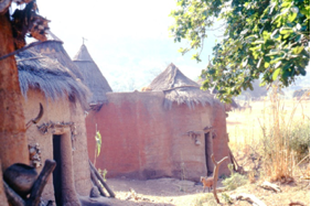 Dans une plaine nous avons aperçu un hameau. Nous abandonnions les véhicules, poursuivions à pied et débouchions au centre d’habitations dispersées: Ce n’était que de petits châteaux forts en miniature : “Les Tata Somba“. Ils sont communs dans l’Atacora, au nord-Togo et au nord Bénin. “Somba“ est le nom générique retenu par l’administration coloniale pour désigner l’ensemble des groupes socioculturels vivants dans la montagne et le piémont occidental de l’Atacora. « Bien avant la colonisation de cette région par les français, de nombreux peuples y ont élu domicile dans le but d’échapper à la soumission des puissances conquérantes et aux pillards.