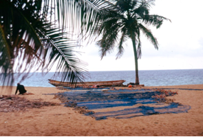 Nous avions envie de poison, tout en longeant la côte en direction de Cotonou au Bénin, nous recherchions une cabane de pécheur pour nous en préparer. Toujours la même réponse : « la mer est trop mauvaise ». Chemin faisant nous empruntions une voie latérale, une sorte de délaissé, conduisant à des cabanes. Au loin nous apercevions des personnes qui gesticulaient. Je m’arrêtais de rouler et réalisais que nous roulons sur un tapis de petits poissons qui séchaient au soleil. Nous faisions rapidement demi-tour, mais laissions encore les traces de douze pneus dans cette pèche. Nous n’étions pas très fiers.