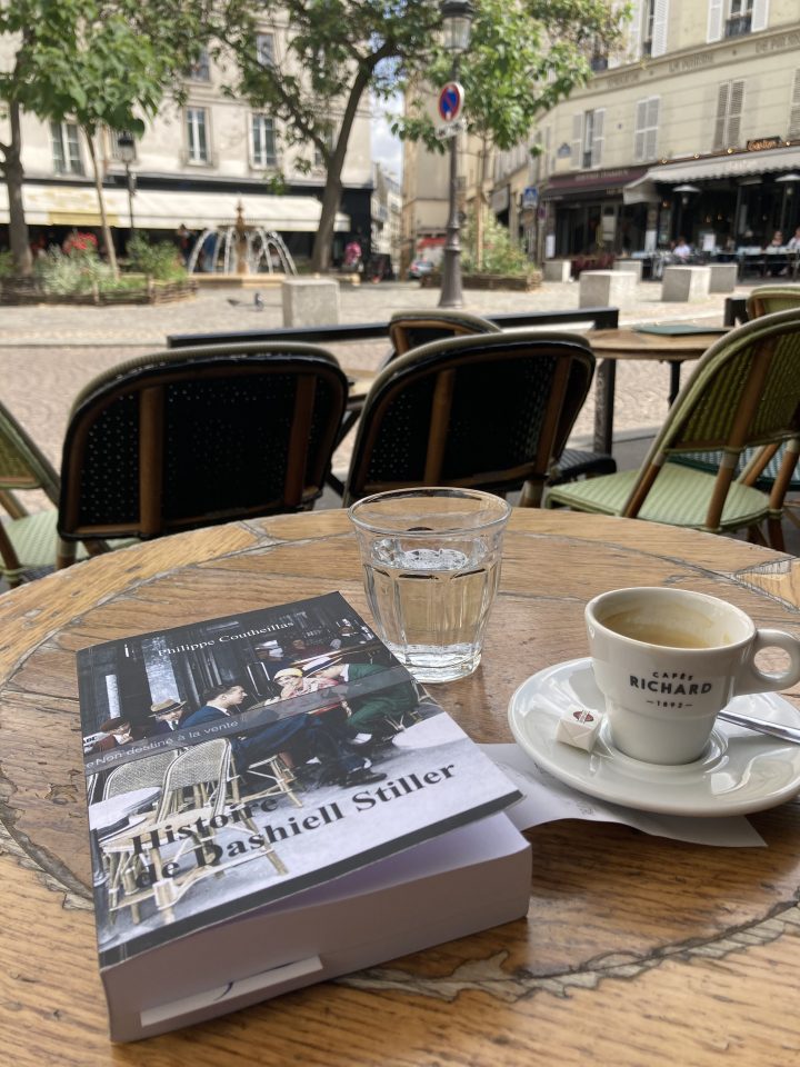 En prime, on cherche le nom de la place où a été prise cette photo , d’anthologie au demeurant : le livre , le café … l’esprit de l’écrivain plane…