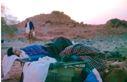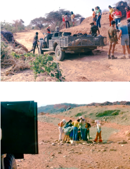 Nous reprenons les camions et arrivons à une faille dans laquelle a été réalisée une piste très pentue. Par sécurité, tous les passagers ont l’ordre de descendre et de poursuivre à pied.