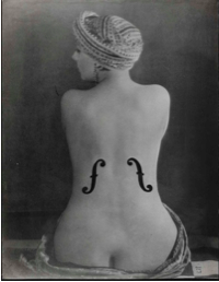Autrement dit, pour que la photo soit un art, il faudrait que ce qu’elle montre soit une pure invention du photographe. Le meilleur exemple de cette théorie est Man Ray dans la Femme Violon. Il y a bien une création et ce n’est pas la reproduction de la réalité. C’est une fiction au départ. Et force est de constater que toutes les œuvres d’art sont au départ des fictions inventées par leurs auteurs.