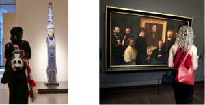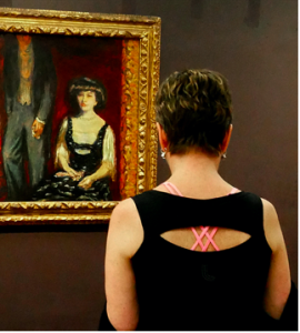 Une autre fois, j’avais pris en photo une jeune femme qui regardait le tableau de Van Dongen, Nini, danseuse aux Folies Bergères. Leurs tenues vestimentaires avaient été le déclencheur mais je n’avais pas remarqué qu’elles avaient toutes les deux les mains posées sur les hanches, exactement de la même manière ! Ce mimétisme pourtant fréquent chez les visiteurs des musées ne m’est apparu que plus tard.