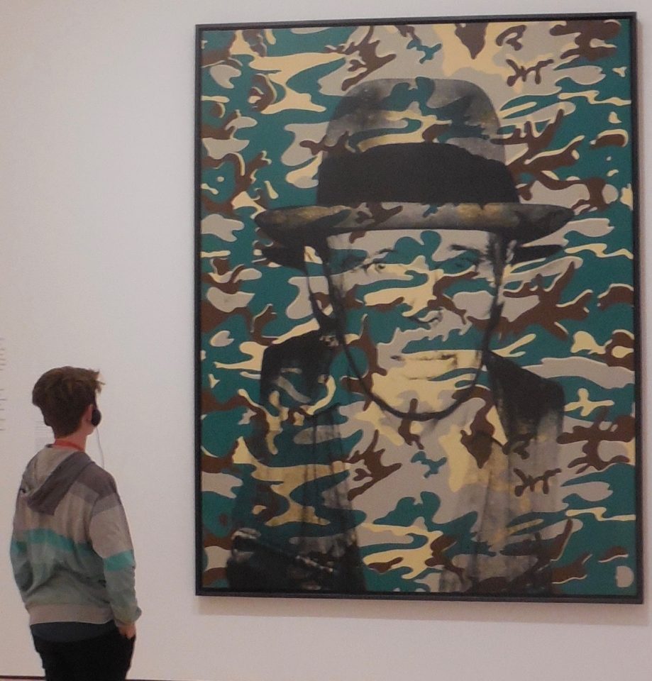 Je pense que c’est ainsi graphiquement plus fort que si le gamin avait été en treillis. Le mimétisme eut été complet, mais la photo trop chargée.