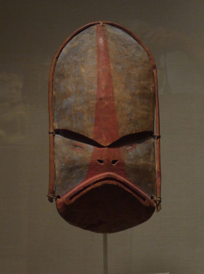 Regardant ce ‘masque’ attentivement, je me demande pourquoi les yeux (les trous pour voir) ne sont pas dans l’ombre de l’arcade sourcilière, à la hauteur du ressentiment?