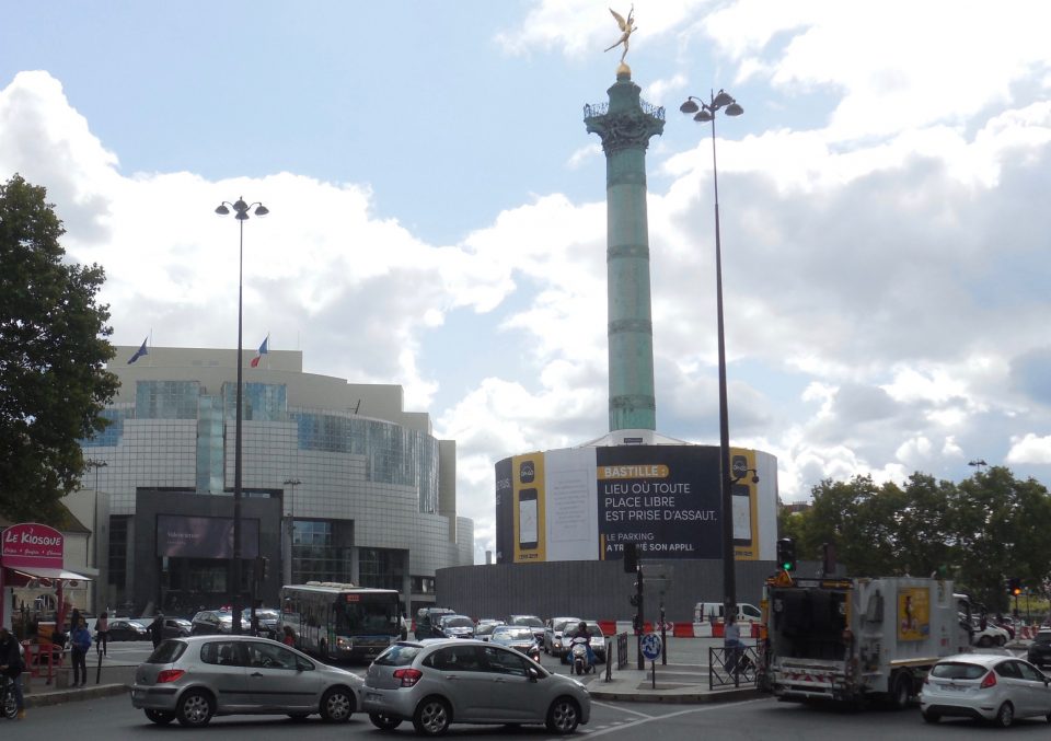 Regardez la première photo : On vient d’achever le nouveau socle de la Colonne de Juillet ! On l’a voulu dans le même style que celui de l’Opéra Bastille.
