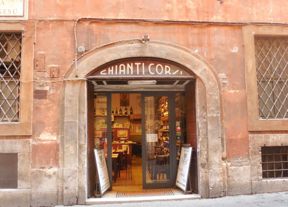 Voici un restaurant-cave à vin que l’on ne peut que recommander chaudement à ceux qui veulent déjeuner au calme et pour pas cher dans le Centro Storico de Rome. Corsi n’est pas une de ces œnothèques récentes qu’un commerçant branché a déguisé en établissement ancien et patiné. On sent bien que Corsi est là depuis très longtemps. La maison semble être tenue par toute une famille, au service, à la caisse, à la cuisine, partout. Le restaurant offre une salle traditionnelle, mais ce n’est pas là qu’il faut choisir sa table. Il faut arriver assez tôt pour pouvoir trouver une table dans la boutique où sont exposées et stockées les bouteilles de vins sur des rayonnages qui recouvre tous les murs sur plus de trois mètres de hauteur. La cuisine y est banale, mais bonne, comme presque partout à Rome. Pour les vins, vous aurez le choix en regardant autour de vous.