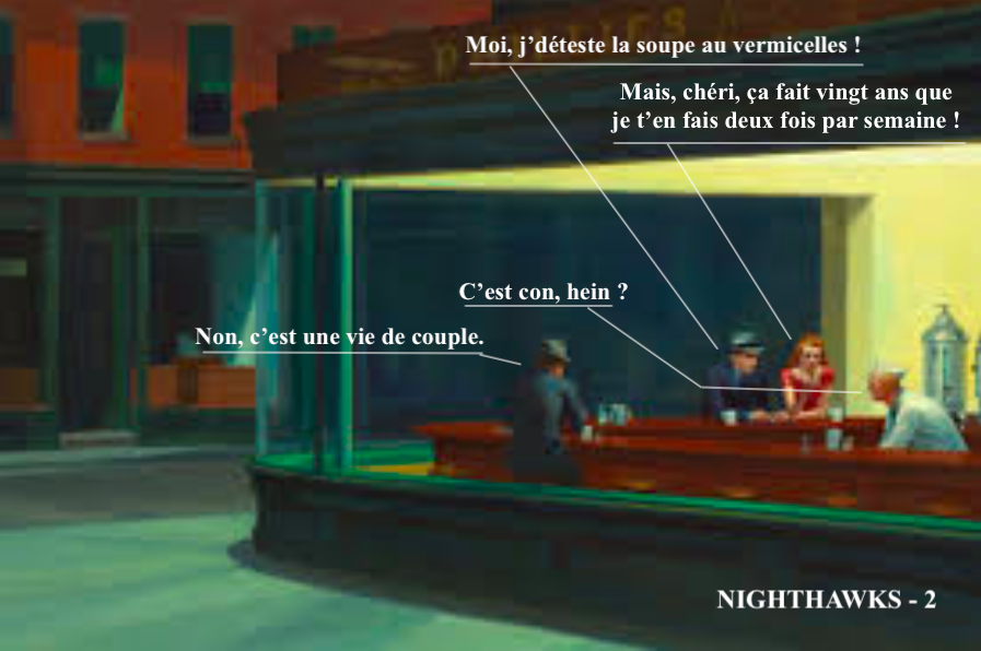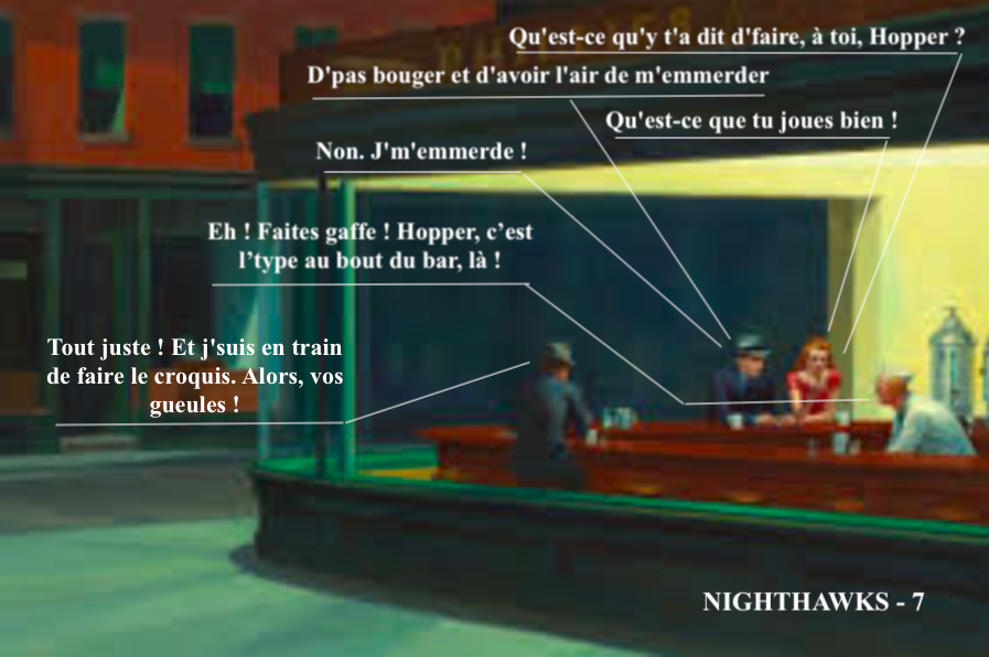 C’est au cours d’une soirée plutôt arrosée qu’Hopper a pondu cette incompréhensible version. Certains y voient une terrible mise en abime :