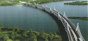 Un ouvrage ferroviaire et routier, à la frontière Zambie/Botswana, près de Livingstone, sur un tracé courbe d’un km, en travées de 130m.