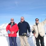 Finalement, ça s’est très bien passé et nous avons pu faire à peu près ce qui était prévu. L’endroit trouvé pour pique-niquer était idéal et nous n’avions pas oublié le tire-bouchon. La neige a été plutôt bonne avec pourtant un peu de verglas en bas de la Solaize. J’ai bien dû faire une concession : suite à un refus général et catégorique de prendre un café les skis aux pieds, nous nous sommes installés confortablement au soleil sur la terrasse du bar de l’Ouillette. Ça été un peu dur d’en repartir mais, à 4h20, nous étions en haut de Tovière.