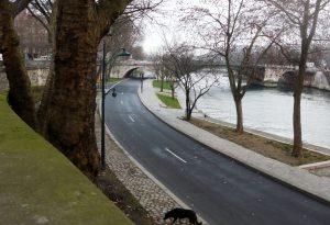 Ce matin-là, pas plus tard qu’il y a deux jours, vers 11h22 du matin, je passais sur le pont Notre-Dame. Il faisait beau et déjà un peu chaud. Pour vous, mes lecteurs, qui n’avez pas la chance inouïe de vivre à Paris, du haut du pont, j’ai pris cette photo de la voie sur berge. Sur la gauche, vous pourrez admirer les magnifiques aménagements, dans le style « herbes folles », apportés par notre Mairie pour l’agrément des promeneurs et, sur la droite, la foule qu’ils ont attirée. Par pur souci d’esthétique, je n’ai pas souhaité que figurent sur la même photo les encombrements concomitants du quai de Gesvres.